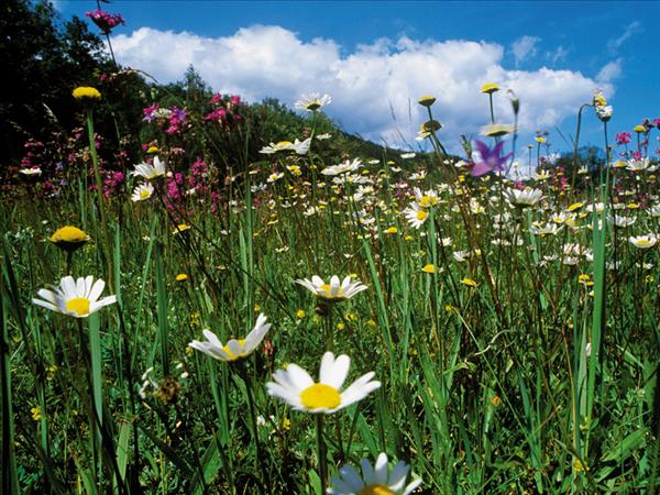 Mimo příjemně chladné klima lesa nás na polní cestě zaplaví horký vzduch naplněný lučními vůněmi. Pryskyřník prudký, kozí brada a třezalka, fialový chrastavec, svízel syřišťový, jetel luční, svízel povázka, řebříček a kakost luční. Pestře rozkvetlou louku obletují motýli, doprovázeni cvrčky, kobylkami a cikádami. Krása vyžaduje péči: V národním parku se seče v souladu s ochranou přírody; vždy zůstane kousek louky neposečený. Tento zelený ostrov je útočištěm pro živočichy; ponechané rostliny jim skýtají potravu a úkryt.