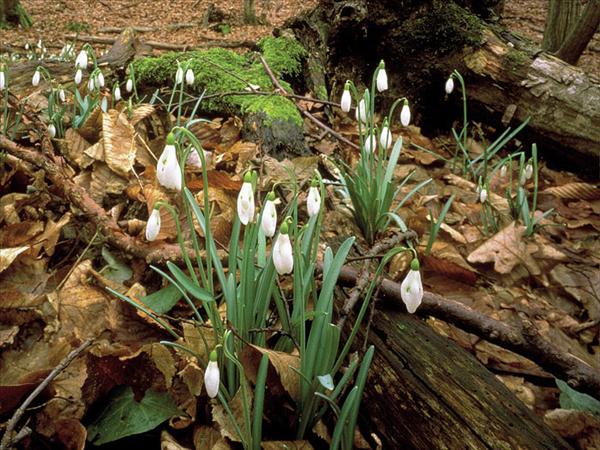Ke konci února, na začátku března se na svět prodírají první sněženky. O několik týdnů později a po několika dalších mrazících se les národního parku podobá pestře kvetoucímu moři. Když jsou sněženky v plném květu, starají se rozkvetlé jaterníky, dymnivky plné, lýkovce jedovaté, plicníky lékařské, prvosenky jarní a orseje jarní o zářivý barevný kontrast. I mezi keři se nachází raně kvetoucí druhy: Strmá, jižně exponovaná šíje ostrohu Umlaufberg je zcela pokryta žlutě kvetoucím dřínem obecným.