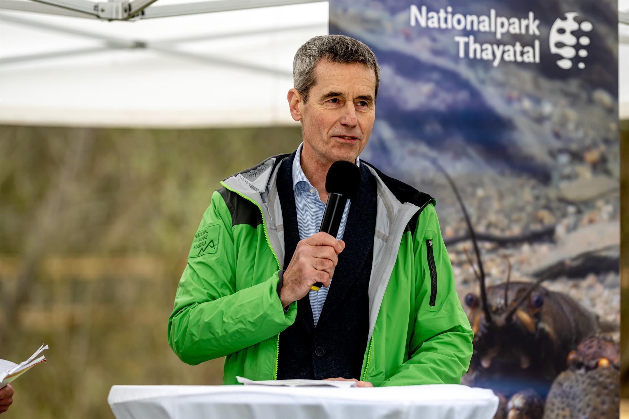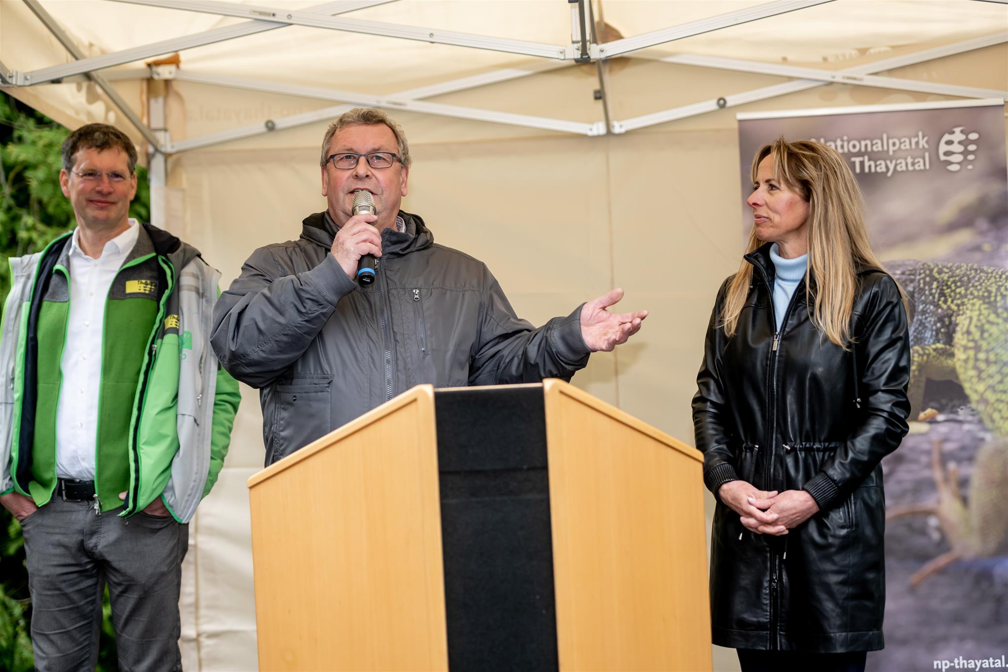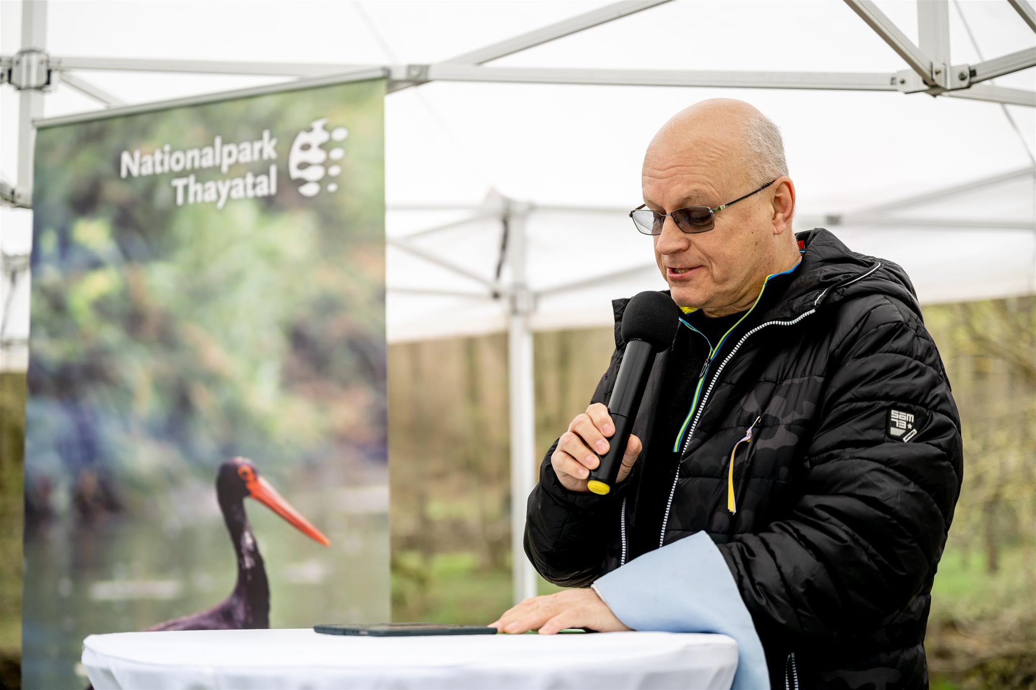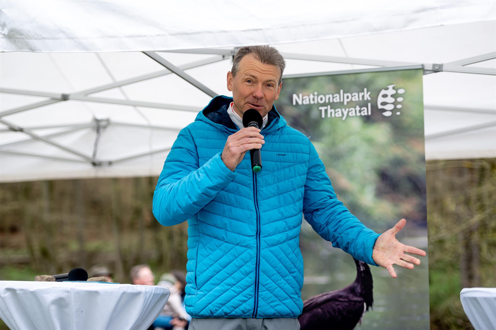Sektionsleiter Christian Holzer vom Bundesministerium für Klimaschutz würdigte im Rahmen der Eröffnung die gute Zusammenarbeit der beiden Nationalparkverwaltungen: "Ökosysteme enden nicht an Staatsgrenzen. Daher ist es wichtig, dass die Nationalparks beider Länder zusammenarbeiten um die außerordentlich hohe Biodiversität des Thayatals zu schützen. In den Nationalparks darf sich die Natur frei und nahezu ohne Einfluss des Menschen entwickeln. So entstehen hochwertige Lebensräume, in die bedrohte Arten wieder zurückkehren. Ein prominenter Vertreter ist die Wildkatze, die seit 2007 hier nachgewiesen wird. Erfreuliche Nachrichten gibt es nun auch vom Seeadler. Bereits seit den 90er Jahren ist er hier Wintergast, nun brütet er erstmals im grenzüberschreitenden Nationalpark Thayatal-Podyjí!"