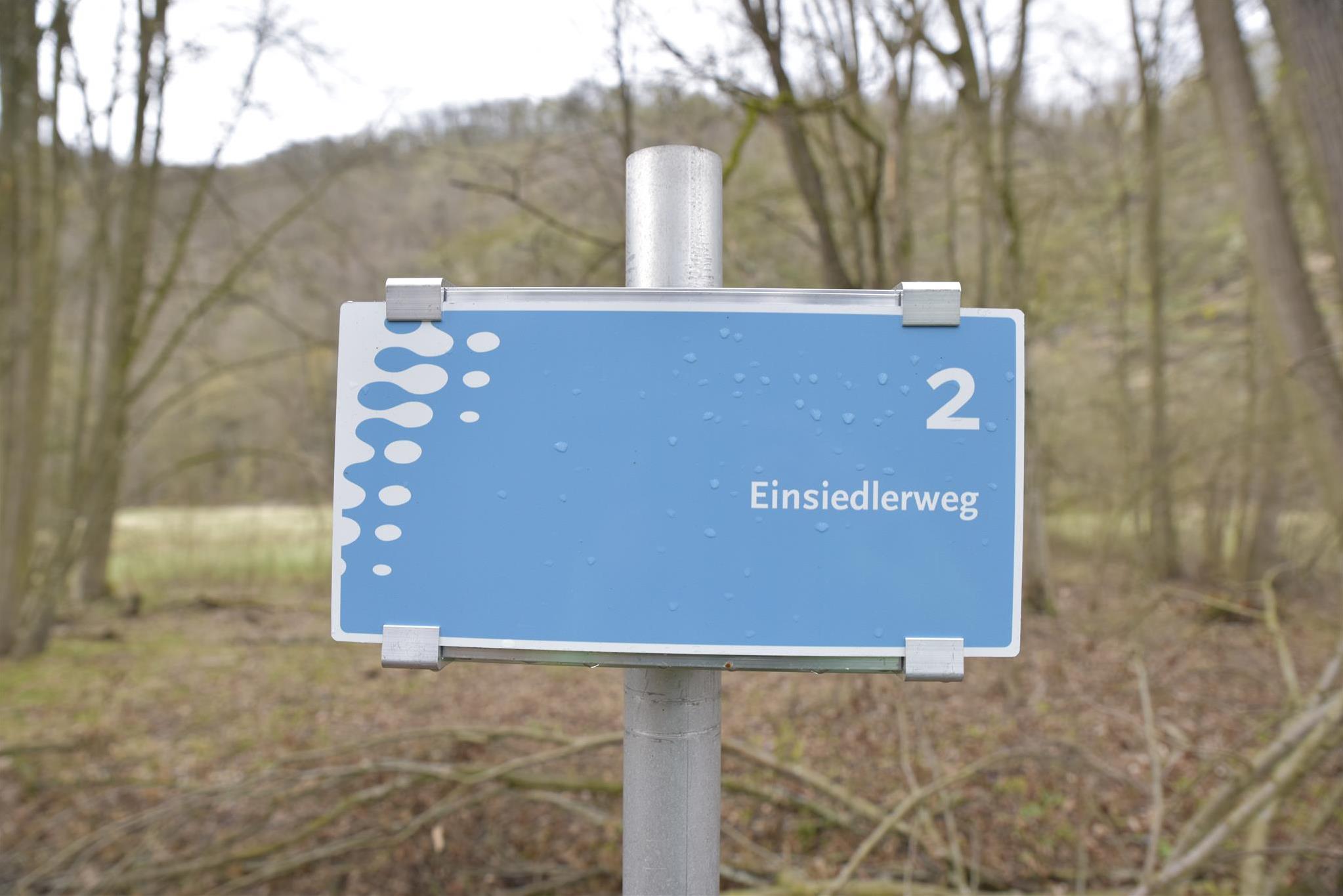 Der neue Wanderweg führt von Hardegg ausgehend über zwei Aussichtspunkte mit eindrucksvollen Ausblicken ins Thayatal zum "Einsiedler". Dabei handelt es sich um eine hohe Felswand am Rand einer Wiese direkt neben der Thaya, in der in ca. 8 m Höhe eine Felsbehausung zu erkennen ist. Die Sage berichtet, dass hier zur Zeit der Kreuzzüge ein Einsiedler gewohnt hat. Bereits der Weg zur Brücke ist ein eindrucksvoll und führt über zwei Aussichtspunkte, die eindrucksvolle Ausblicke auf die Stadt und Burg Hardegg und die Tallandschaft der Thaya bieten. Auf der Einsiedlerwiese laden die Wiese und der flache Thayazugang zum Verweilen und zum Entspannen am Flussufer ein. Hier ist eine Naturerlebniszone ausgewiesen, bei der Kinder sogar im Wasser spielen können. Über die neu errichtete Brücke geht es anschließend hinüber auf die tschechische Seite und flussaufwärts zurück nach Hardegg.