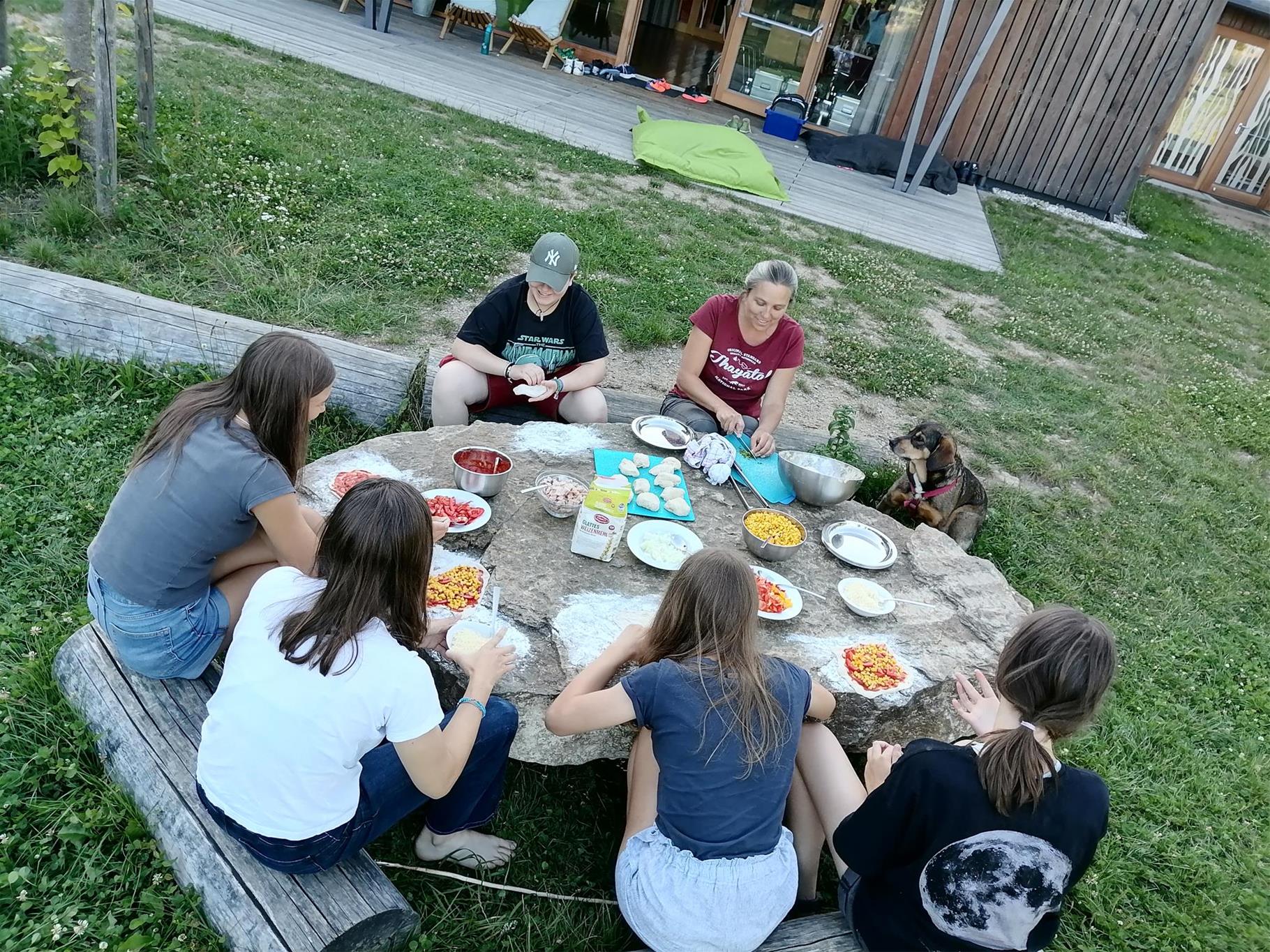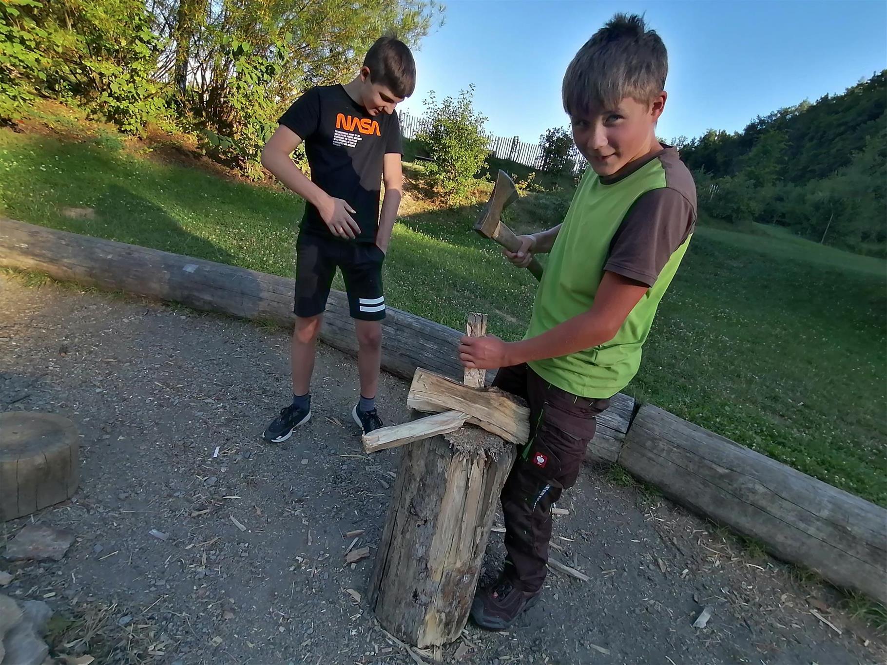 Die Gruppe formierte sich rasch zu einer eingespielten Truppe, auch dank der witzigen gruppendynamischen Spiele zwischendurch. Da gab es die einen, die im Nu das Lagerfeuer entzündeten - das Holz dafür hackten sie selbstverständlich selbst. Dann gab's noch das Team der Spitzenköchinnen und -köche, das der Lagerfeuer-Musiker:innen und die Gruppe, die für den nächsten Programmpunkt herrichtete - und so fand jeder seine Bestimmung.