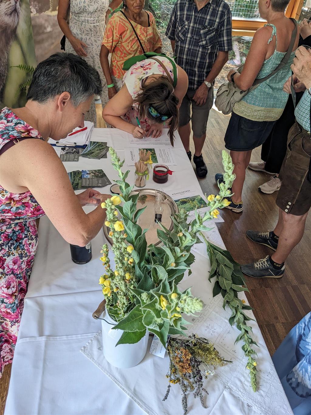Barbara Obmann, Kräuter- und TEM-Expertin, wusste bei ihrem Vortrag über die vielfältigen Wirkungen und Kräfte der Königskerzevon weit mehr als den allseits bekannten Wirkungen dieser kraftvollen Pflanze zu berichten! Sehr guten Anklang fand auch die Kräuterwanderungmit Rangerin und Natur im Garten Beraterin Lena Karasek rund ums Nationalparkhaus. Beim anschließenden gemeinsamen "Tratsch im Kräutergarten" mit Helga Donnerbauer packte die "Kräuterhexe" neben Rezepten auch persönliche Geschichten und Erlebnisse zu ihren Lieblingskräutern aus.