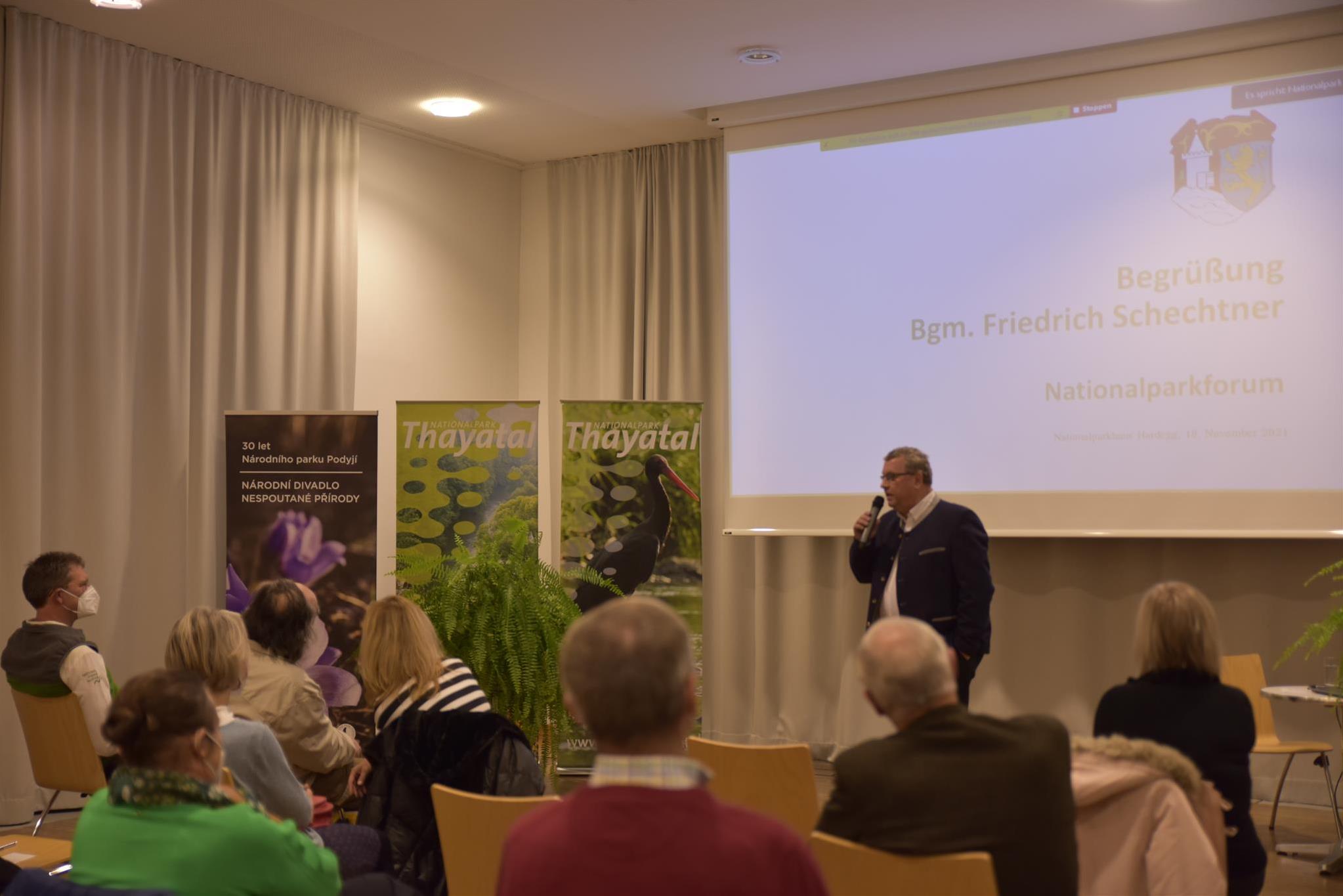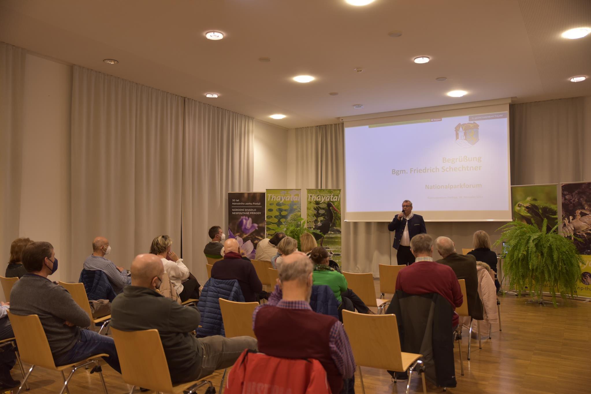 Beim Forum informiert die Nationalpark Verwaltung die Bevölkerung über aktuelle Themen und regt dabei einen Austausch an. Nach der Begrüßung durch den Bürgermeister der Stadtgemeinde Hardegg, Friedrich Schechtner, berichtete Nationalpark Direktor Christian Übl über Aktuelles aus dem Thayatal und gab dabei einen spannenden Ausblick auf das Jahr 2022.