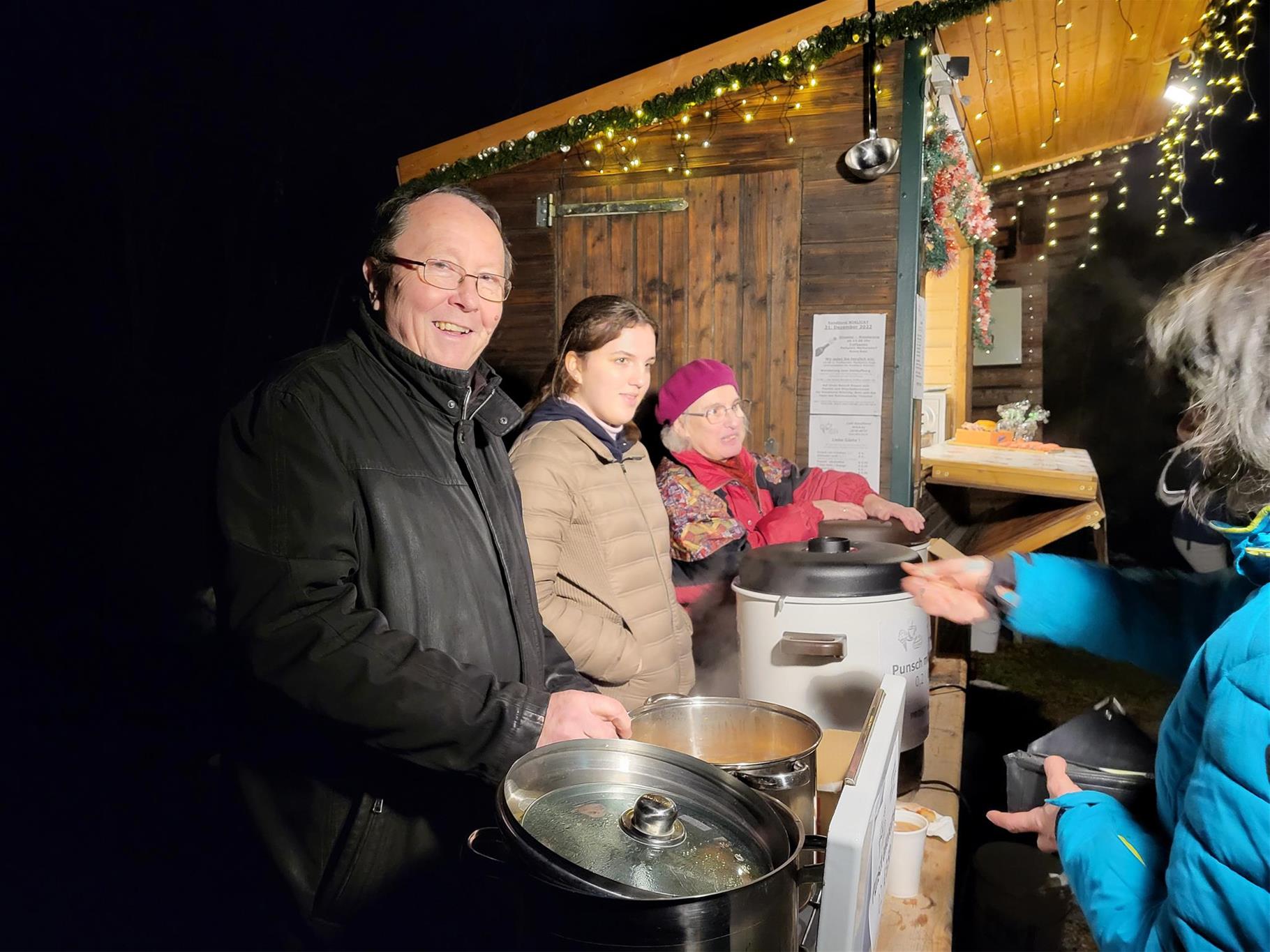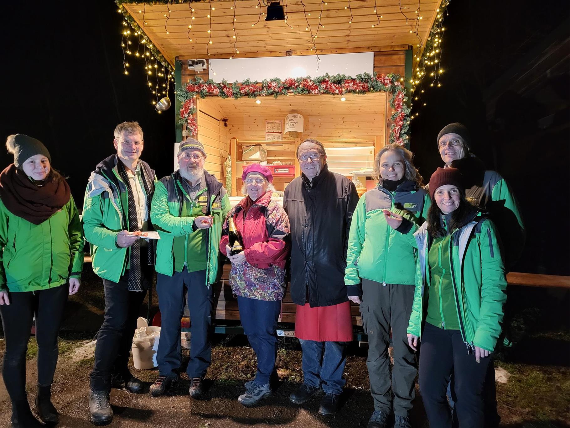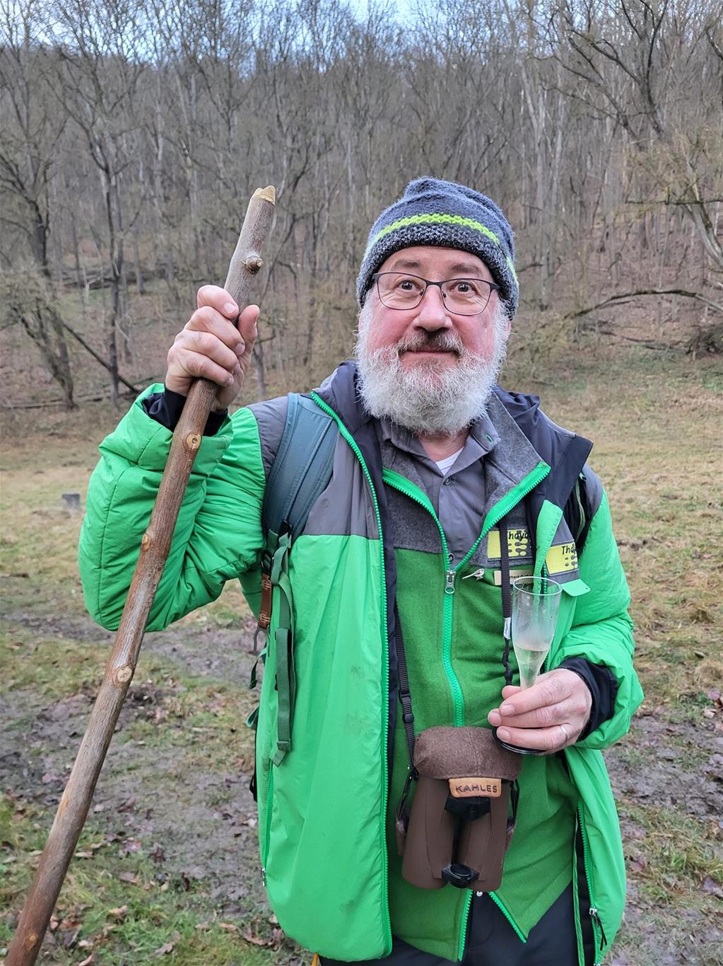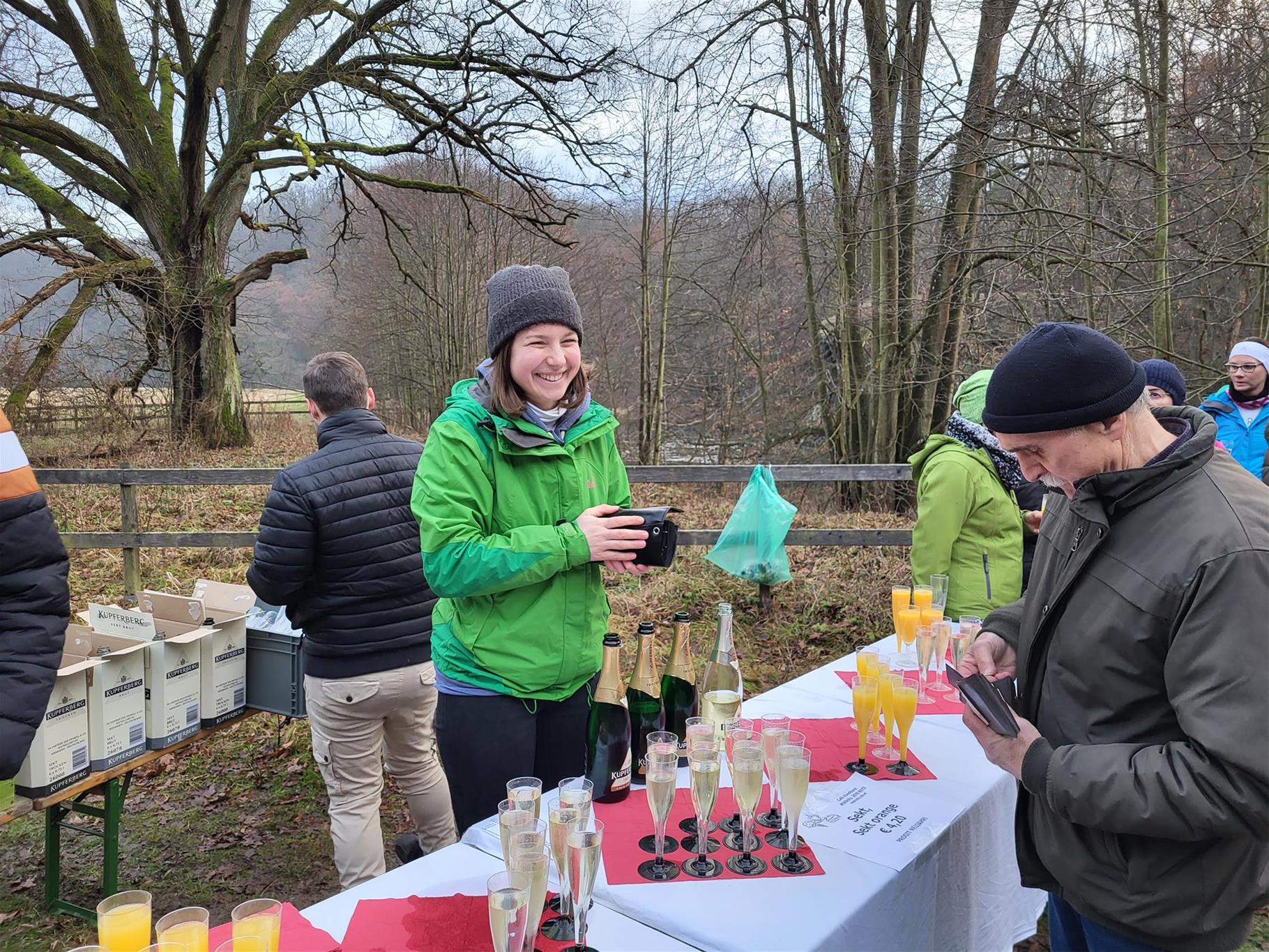 Auch der Silvesterlauf unter der Leitung von Dieter Preiss führte zum Umlaufberg, allerdings wählte die Gruppe die längere Wegvariante um die Flussschleife herum. Während der geselligen Wanderung und bei der Labestation am Kajaparkplatz gab's viele nette Begegnungen, der Retzer Konditor Felix Wiklicky und seine Familie verwöhnten die Gäste mit Sekt, Glühwein und kleinen warmen Speisen.