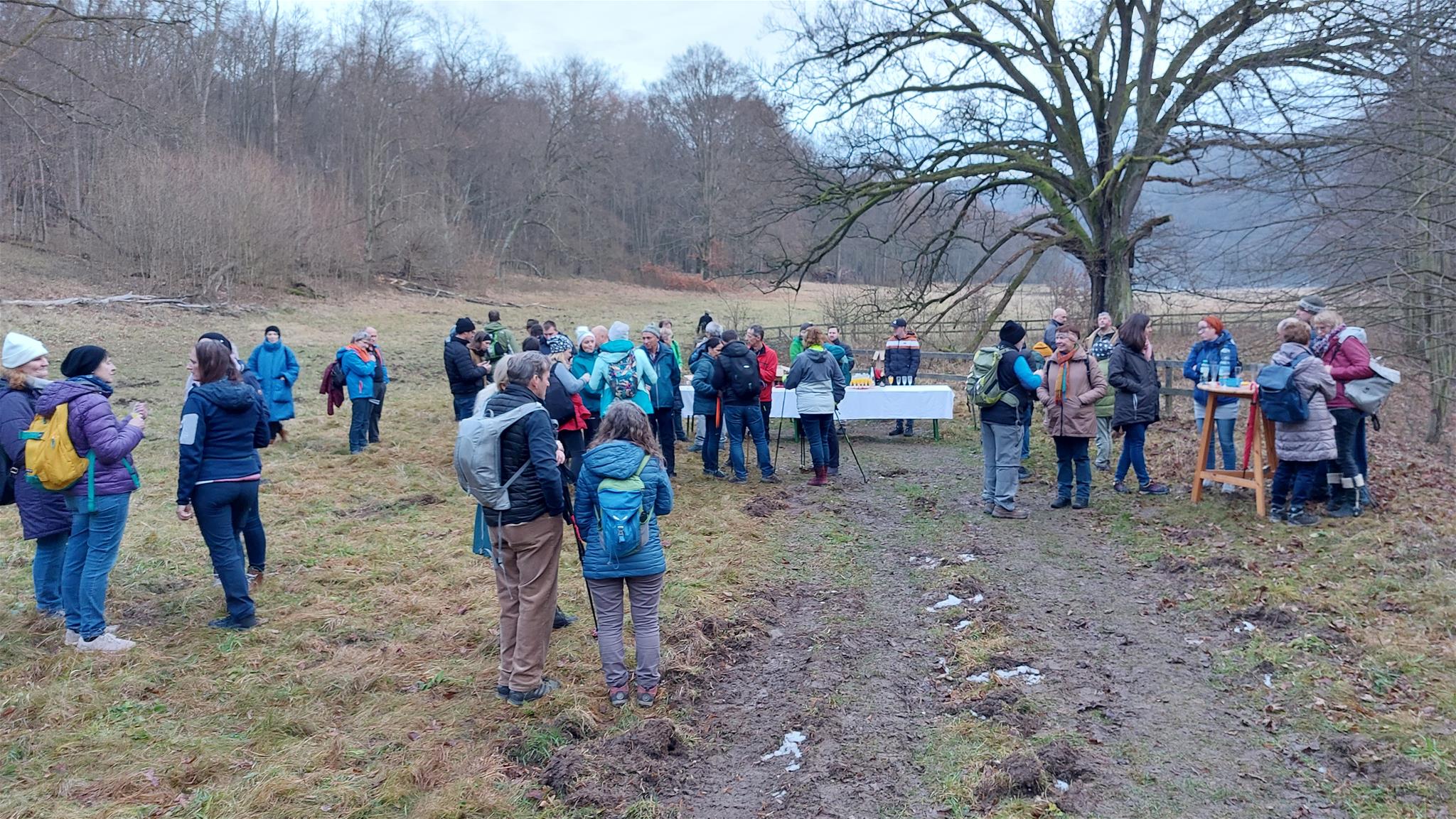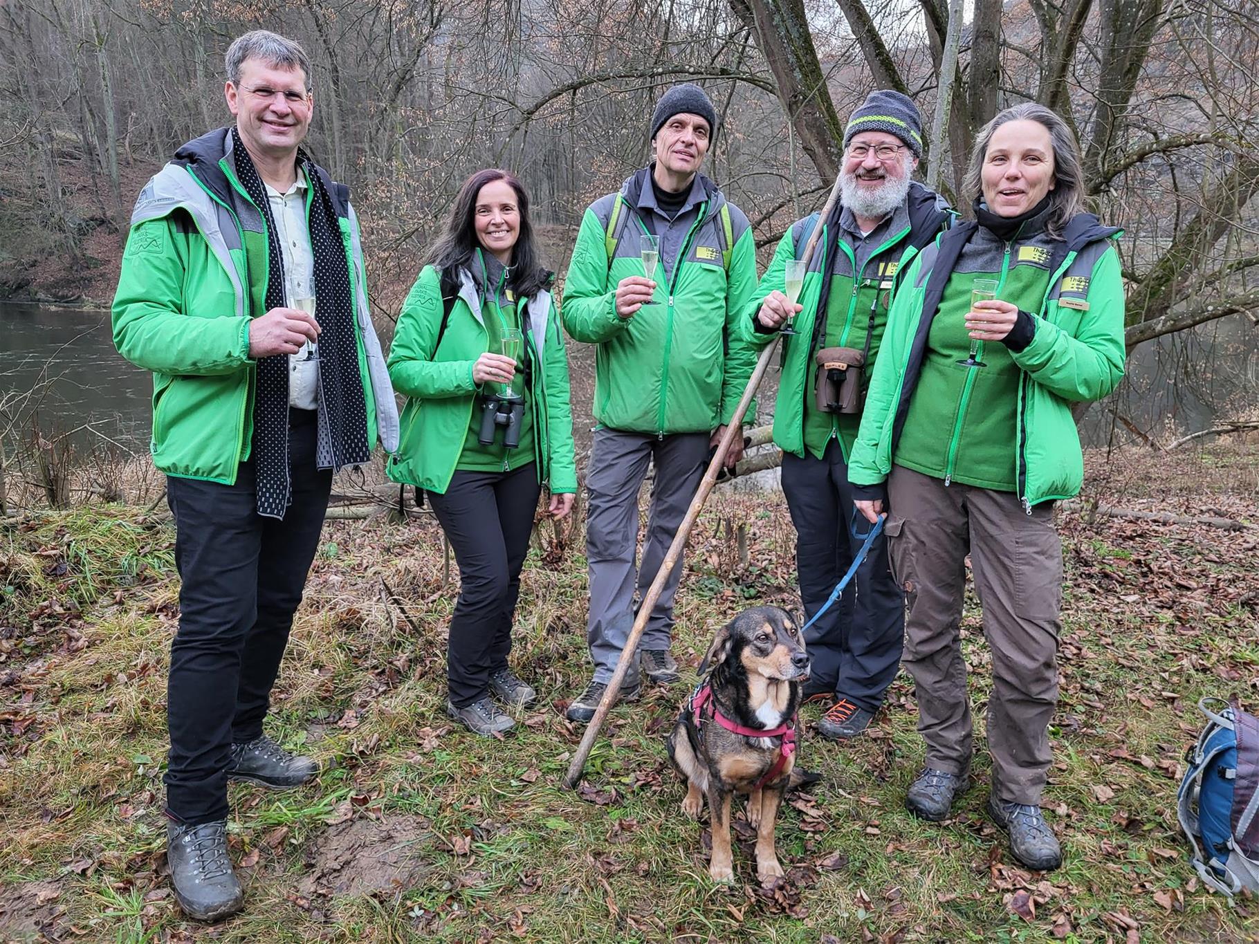 250 Naturfreunde kamen heuer nach Merkersdorf und marschierten unter der Leitung von Nationalparkmitarbeiterin Claudia Waitzbauer und ihrem Ranger-Team auf zwei Routen zum Umlaufberg. Dort erwartete die Teilnehmer ein wunderbarer Ausblick vom Überstieg, der Engstelle des Umlaufberges, und ein Glas Sekt zum Anstoßen.