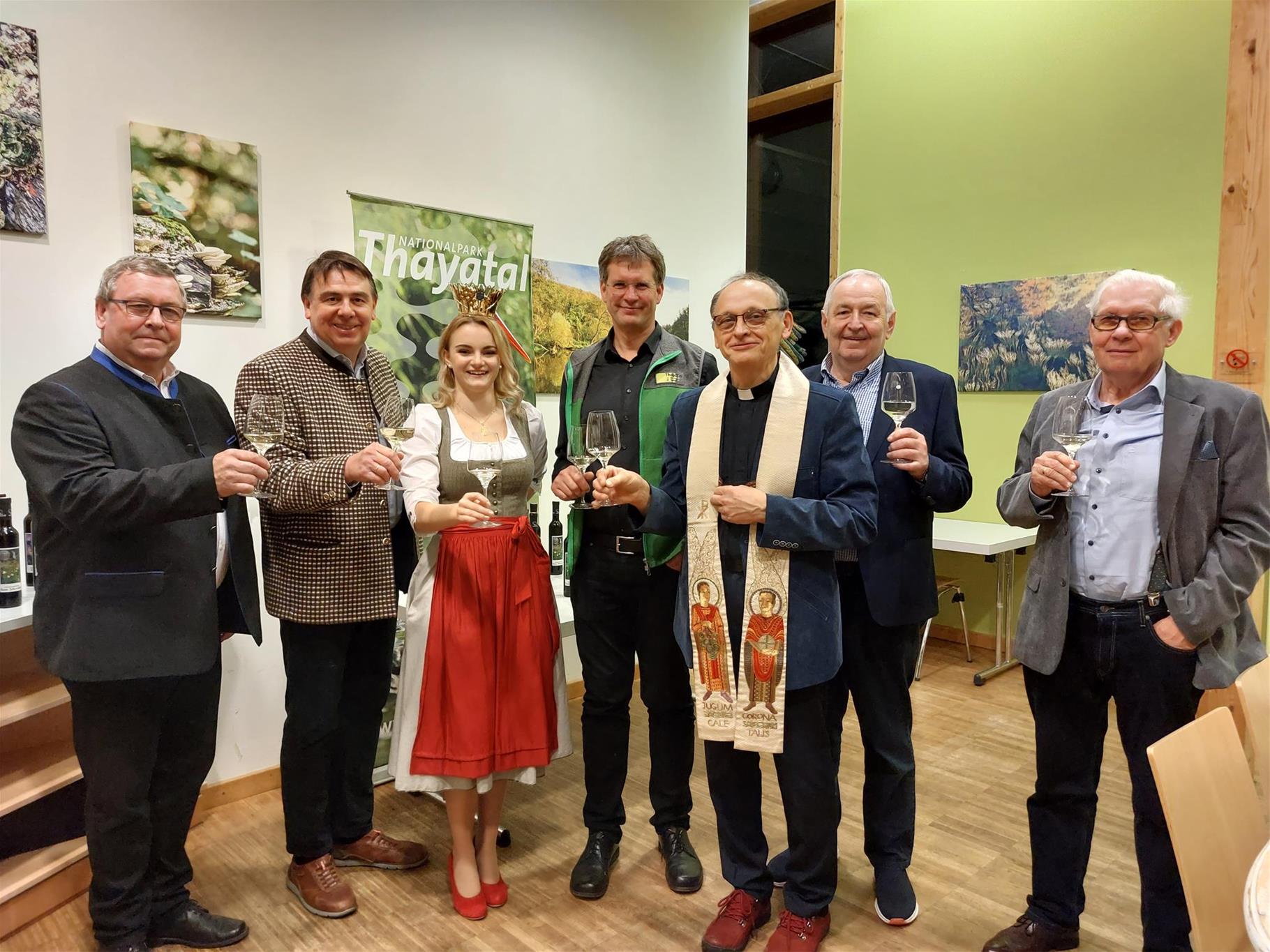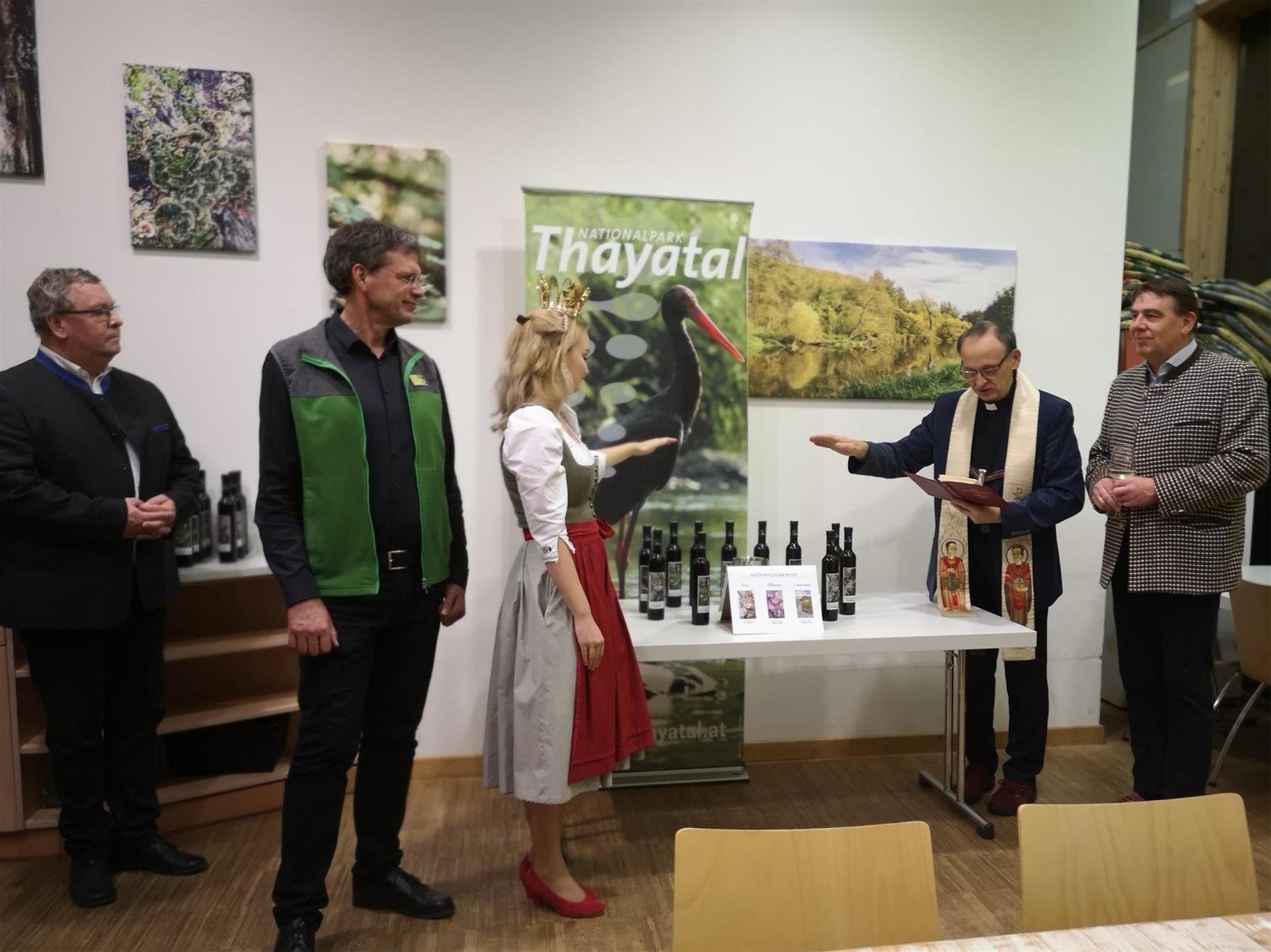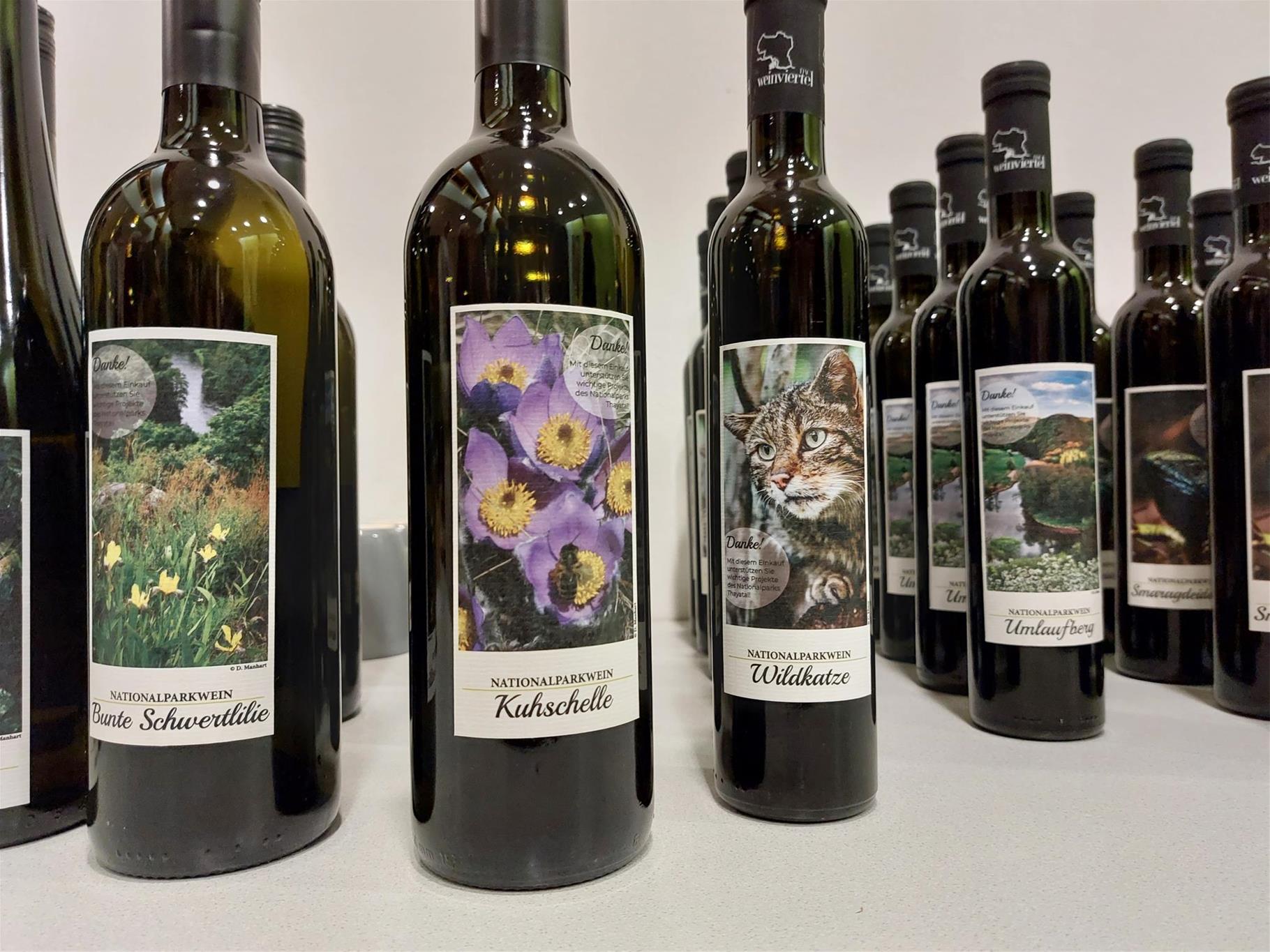 Nun hat der Verein auch einen eigenen Nationalparkwein aus der Taufe gehoben, der am 17. November von Pfarrer Stanislaw Milczanowski im Beisein von Bgm. Friedrich Schechtner und Nationalparkdirektor Christian Übl gesegnet und von Vize-Weinkönigin Magdalena Eser präsentiert wurde. Neben dem Weingenuss kann man mit dem Erwerb des neuen Nationalparkweines auch die Projekte des Nationalparks unterstützen. Je verkaufter Flasche gehen drei Euro an den Verein der Freunde des Nationalparks zur Unterstützung weiterer Projekte. Auf den Etiketten sind 6 verschiedene Ansichten von Tieren, Pflanzen und Landschaften des Nationalparks zu sehen, also auch echte Sammlerstücke.