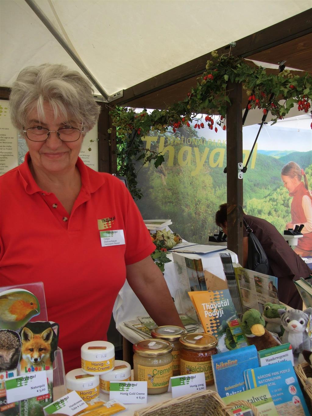 Sie kümmert sich um die Gestaltung unseres Kräutergartens und die Dekoration bei Feierlichkeiten, ist ein wandelndes Lexikon an Sagen und Geschichten aus dem Thayatal, kennt das Kajabachtal wie ihre Westentasche, sodass Jungranger:innen nur so staunen, wenn sie vom "Eisernen Glander" oder dem Frauenhaarberg schwärmt… Die Rede ist von unserer Rangerin Helga Donnerbauer!