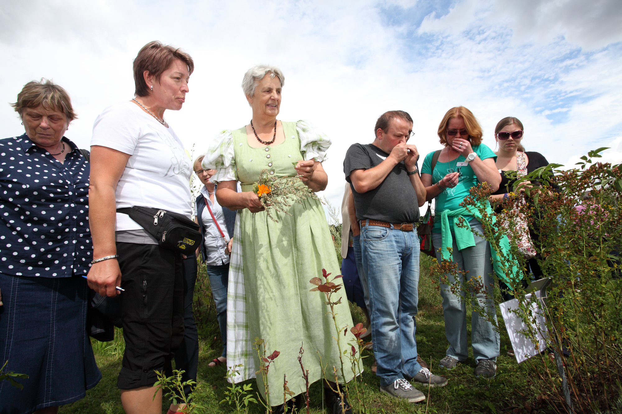 Gemeinsam mit anderen gründete und führte sie den Merkersdorfer Bauernmarkt und setzte damit bereits Ende der 90er Jahre einen wichtigen Akzent zur Vermarktung regionaler Lebensmittel. Unser Kräuterfest geht auf ihre Initiative zurück. Programm und Dekoration gestaltet sie mit großem Engagement und viel Freude, die humorvollen Kräuterwanderungen mit Kräuterpfarrer Benedikt sind immer ein Höhepunkt des Festes. Helgas sympathisches Wesen kommt auch bei Journalisten gut an. In den verschiedensten Medien vom Falter über Servus TV bis zu Radio Maria gibt es zahlreiche Film-, Radio, und Printbeiträge.
