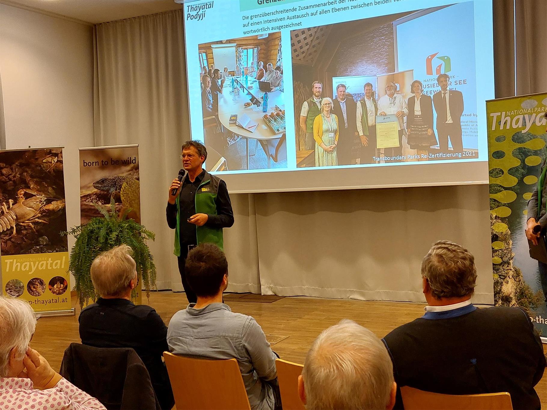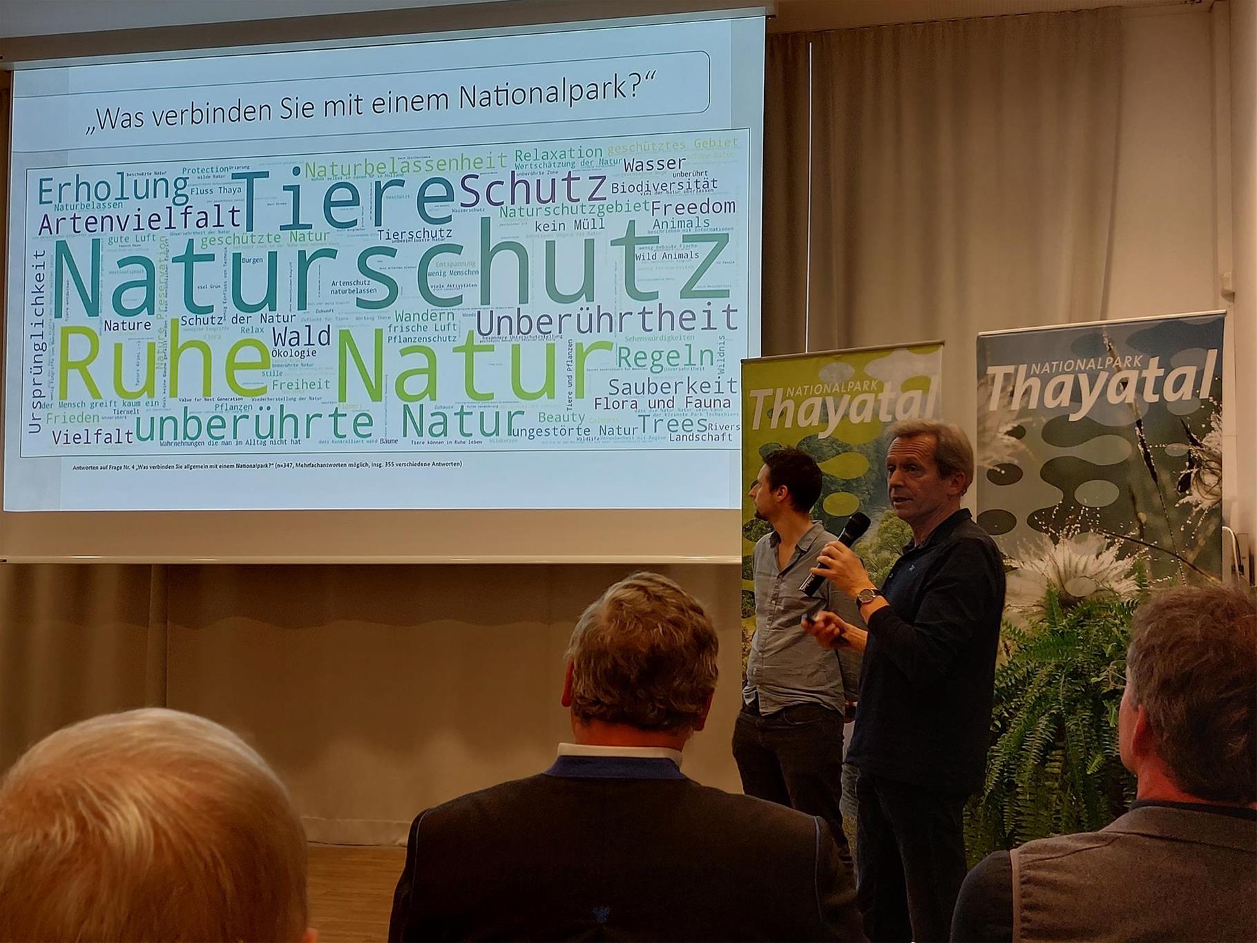 Zu unserer Zufriedenheit bekam der Nationalpark gutes Feedback und eine Durchschnittsnote von 1,5. Beinahe 95 % der 400 Befragten gaben dem Nationalpark die Noten 1 und 2 und fast 90 % der möchten auch wiederkommen. Verblüffend war, dass viele der Befragten den Nationalpark Thayatal nicht als grenzüberschreitendes Schutzgebiet wahrnehmen. Auch fürs Publikum war dieses Thema interessant und es gab zahlreiche Wortmeldungen dazu. Hier besteht jedenfalls "Luft nach oben", um den grenzüberschreitenden Charakter und die gemeinsamen Aktivitäten der Nationalparks Thayatal und Podyjí noch weiter ins Bewusstsein der Gäste zu rücken.