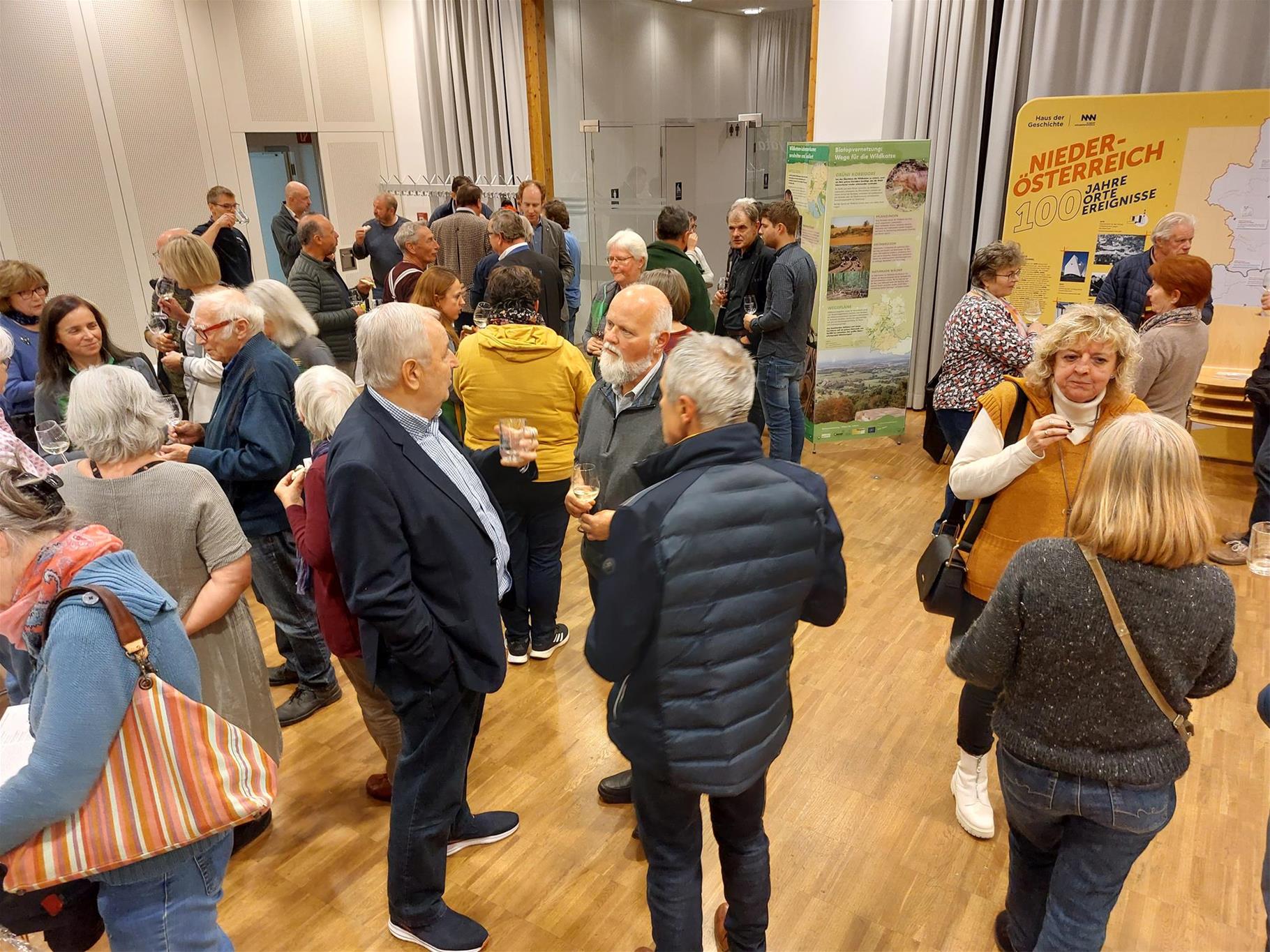 Anschließend erfolgt der gemütliche Teil des Abends. Bei Bio-Wein und Broten von Weinkutscher Stefan Reinthaler finden interessante Gespräche und reger Austausch statt.