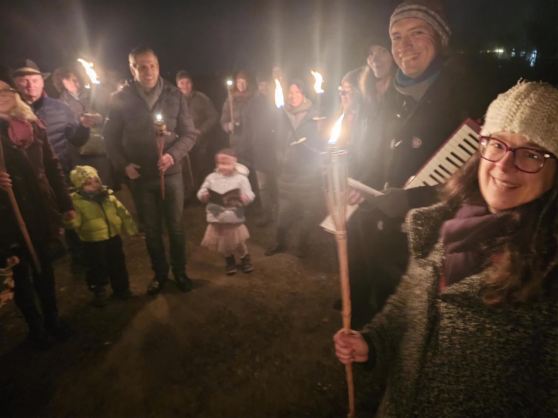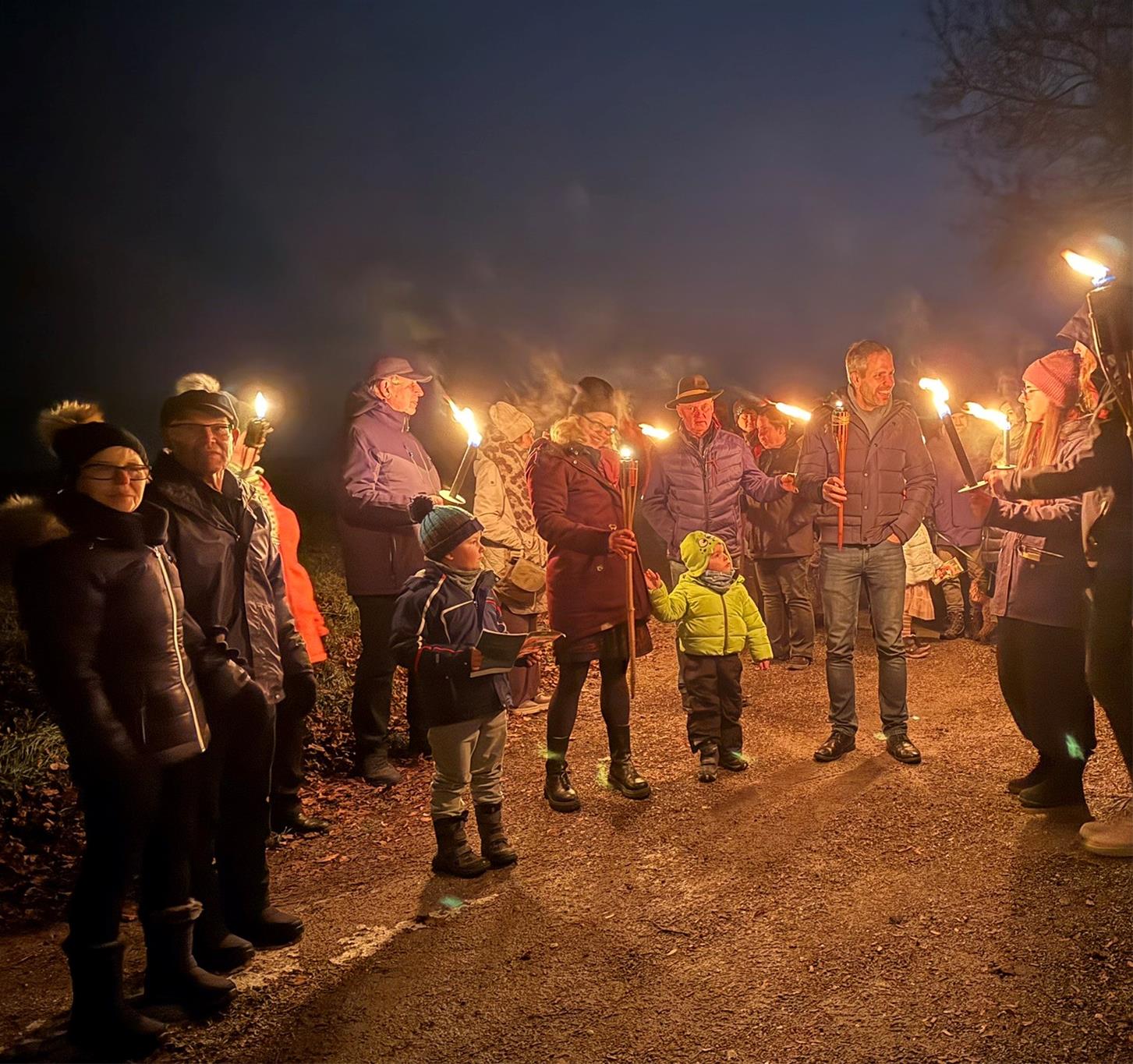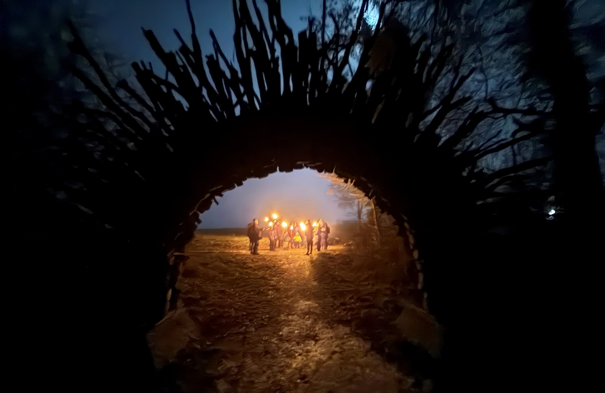 Zum Abschluss führte eine Fackelwanderung durch den winterlichen Nationalparkwald, wo wir hoch über Hardegg gemeinsam Weihnachtslieder sangen.