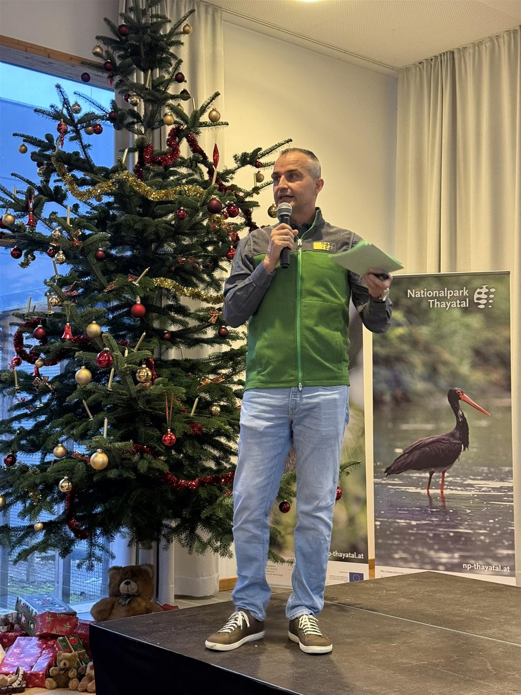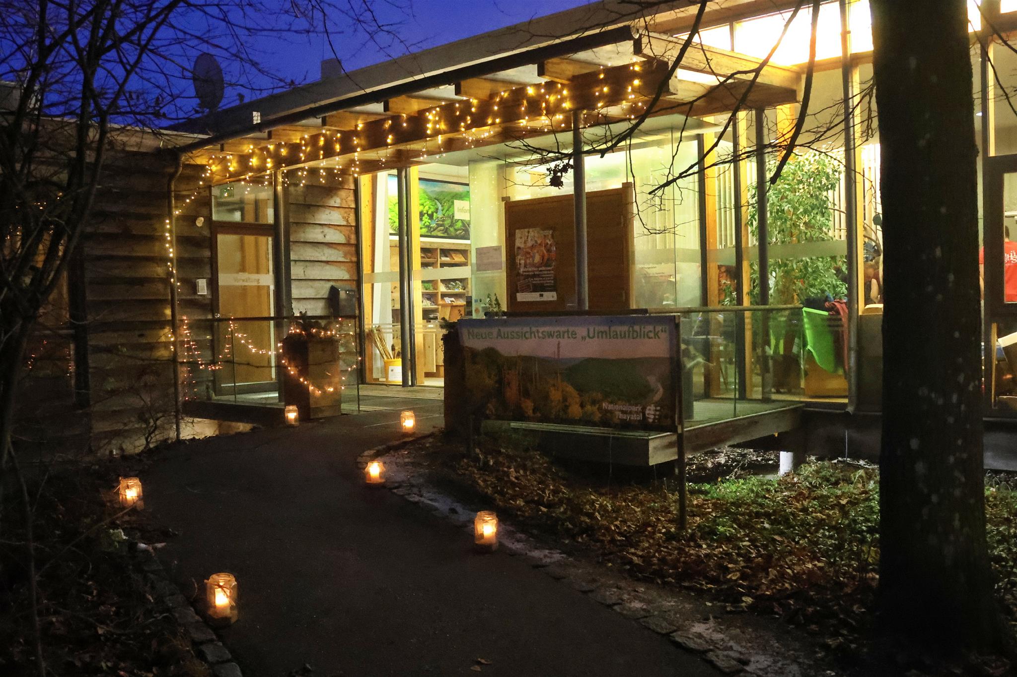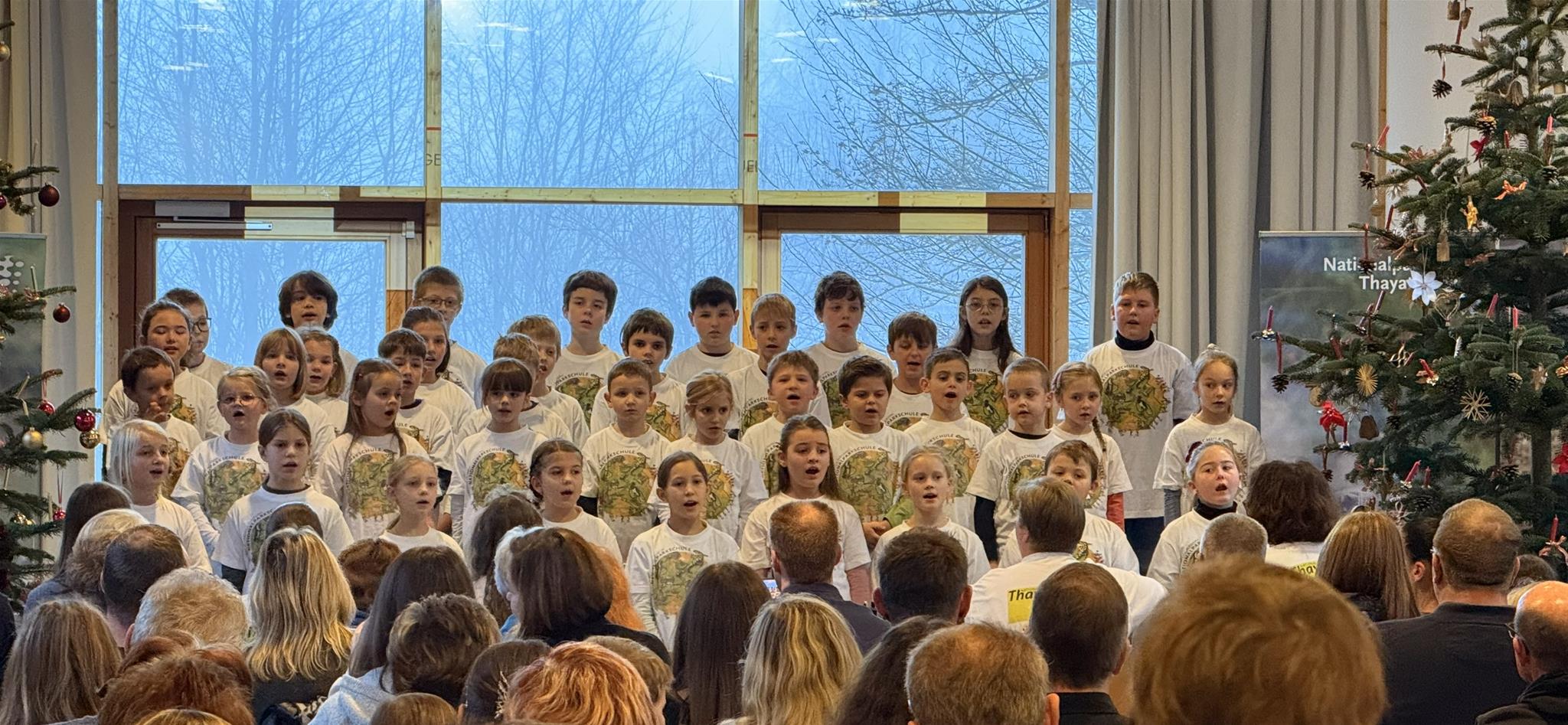 Zum Abschluss führte eine Fackelwanderung durch den winterlichen Nationalparkwald, wo wir hoch über Hardegg gemeinsam Weihnachtslieder sangen.