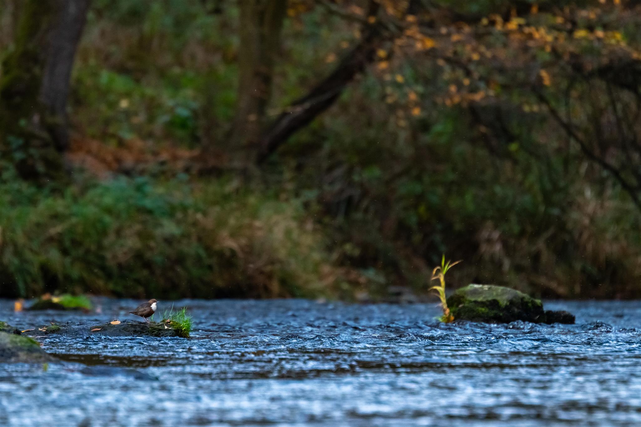 Eine Winterwanderung entlang der Thaya ist für mich ein sehr entspannendes und durchaus spannendes Erlebnis. Bei frostigen Temperaturen und unbelaubten Bäumen bekommt man einen einzigartigen Blick auf das Tal der Wildnis. Die Einblicke auf die Wasseroberfläche der Thaya sind zu dieser Jahreszeit hervorragend und Wasservögel lassen sich wunderbar beobachten. Mit etwas Glück lässt sich ein kleiner graubrauner Vogel gut bis zur nächsten Rast verfolgen. Der unruhige Piepmatz mit seiner auffällig großen weißen Brust hat auf einem moosbedeckten Stein eine Pause eingelegt. Nach einigen knicksenden Bewegungen stürzt er sich ins Wasser und verschwindet für einige Sekunden unter der Oberfläche, um sich seine Mahlzeit zu holen. Ein tauchender Singvogel? Ja, es ist die Wasseramsel, die uns immer wieder in Staunen versetzt! Anatomisch gut auf das Leben am und im Wasser angepasst, lebt sie vorzugweise an schnell fließenden Flüssen. Sie ernährt sich von Wasserinsekten, die sie am Grund des Flusses von Steinen aufliest. Bis zu 15 Sekunden kann sie dabei unter Wasser bleiben!