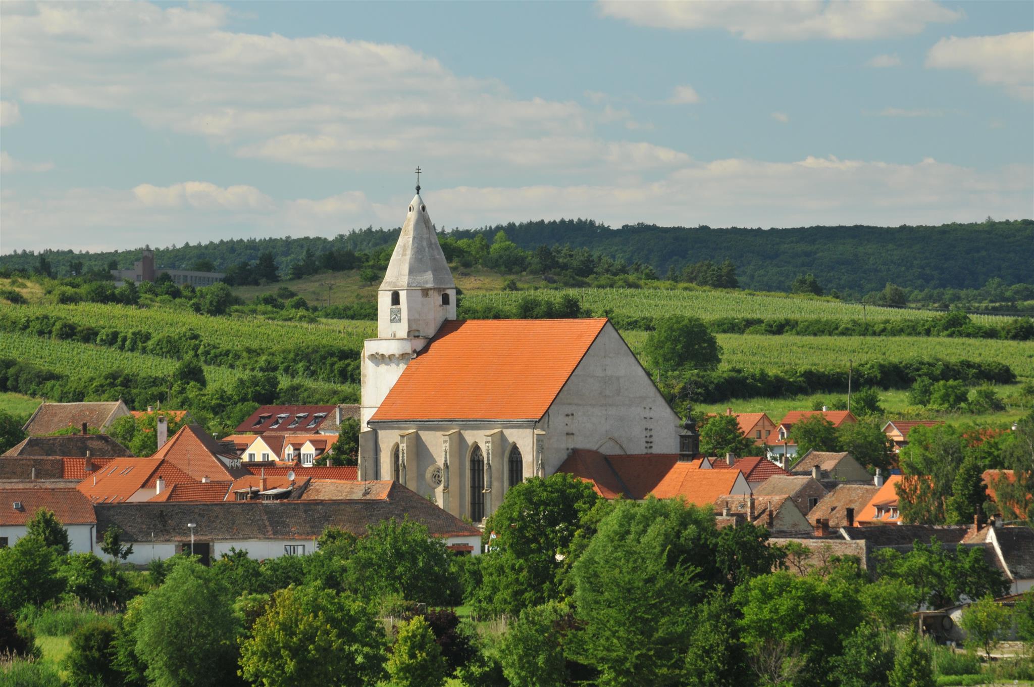Los geht es - am besten früh am Morgen - bei der ersten gelben Markierung am Hauptplatz Retz, das Verderberhaus und Znaimer Tor Richtung Hl. Stein passierend. Die Route E 8 ist zwar durchwegs markiert, manchmal sind die Markierungen - etwa ein gelber Punkt auf einem Stein - aber nicht besonders auffällig. Daher: genau schauen!An der Straßenkreuzung Richtung Mitterretzbach-Hardegg links halten und über den alten Anger gehen. Nach etwa 1 h Wanderung durch die Weinberge, erreicht man den Hl. Stein, wo sowohl Weinschenke als auch Aussichtsterrasse mit malerischen Blicken auf die Wanderer warten. Von hier lässt sich in der Ferne bereits Hnanice und das etwas außerhalb gelegene Hotel Vinice sehen, wo es dann bergab zur Thaya geht, immer der gelben Markierung des E 8 folgend.